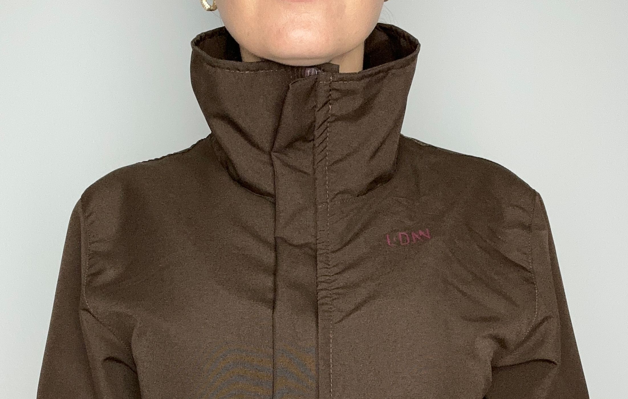 Gola alta para protejer o pescoço, com zíper tratorado.