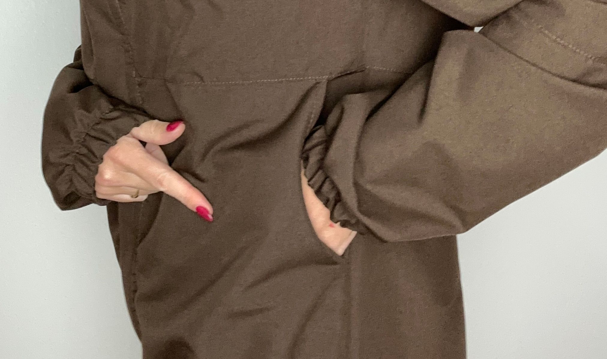 - (1) Largura:48cm (2) Comprimento: 70cm (3) Largura punho: 12cm (4) Comprimento da Manga: 68cm