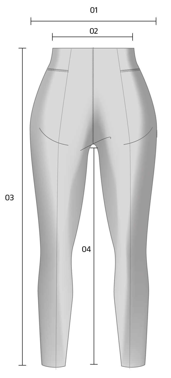 (1) Quadrl: 32cm (2) Cintura: 32cm (3) Comprimento: 98cm (4) Interno perna: 34cm